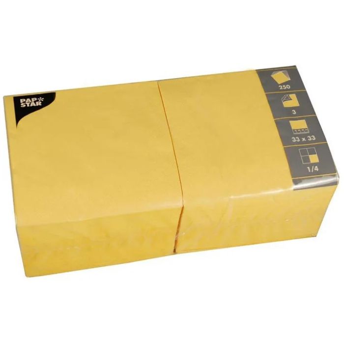 Serviettes de table en papier jaunes (32x32 cm), unies. Lot de 150 de la gamme Daily Collection PAP STAR. Produit 89638