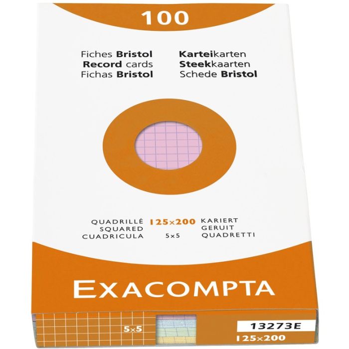 Fiches Bristol quadrillées - 125 x 200 mm - Assortiment EXACOMPTA Lot de 100