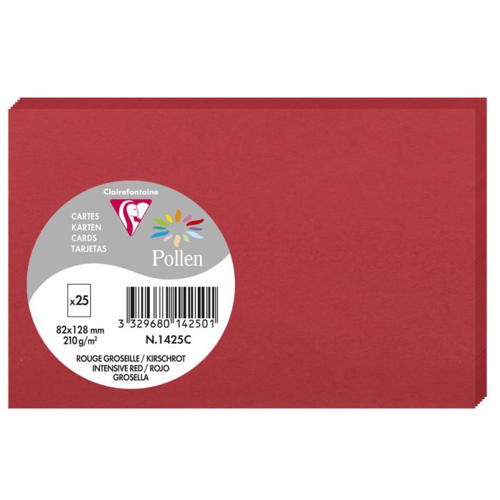 Carte en papier - 82 x 128 mm - Rouge Groseille POLLEN Lot de 25