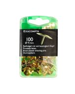 Assortiment de punaises avec une pointe fine en acier laitonné EXACOMPTA pour l'affichage de notes et de photos. Produit 14767E