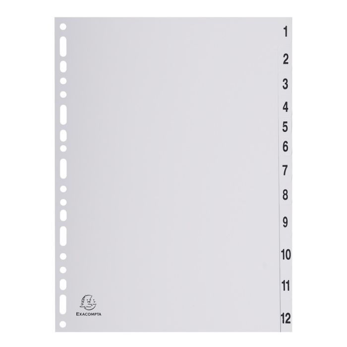 Jeu de 12 Intercalaires numériques en PP gris - 1 à 12 - 225 x 297 mm EXACOMPTA