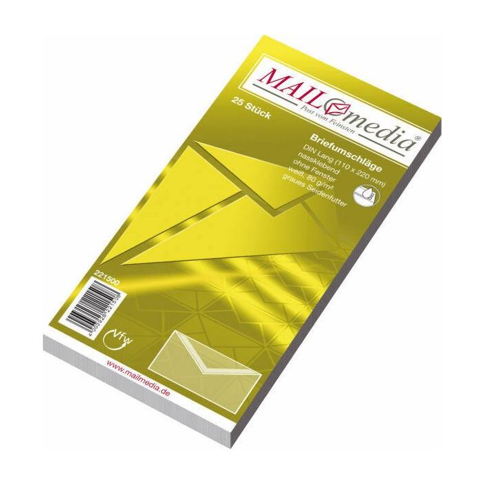 Enveloppes sans fenêtre à rabat gommé - 110 x 220 mm MAIL MEDIA Paquet de 25
