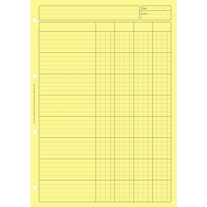 Bloc d'audit et de révision comptable de 80 feuillets jaunes A4 avec 4 colonnes. Produit 2641