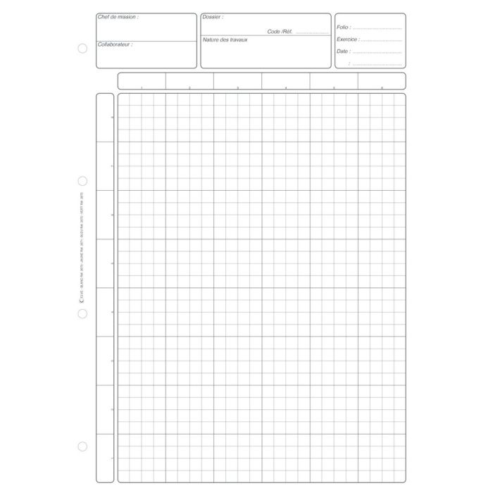Bloc de 80 Feuilles de travail Blanches pour les Audits et Révisions comptables, notes de contrôle. Produit 2670
