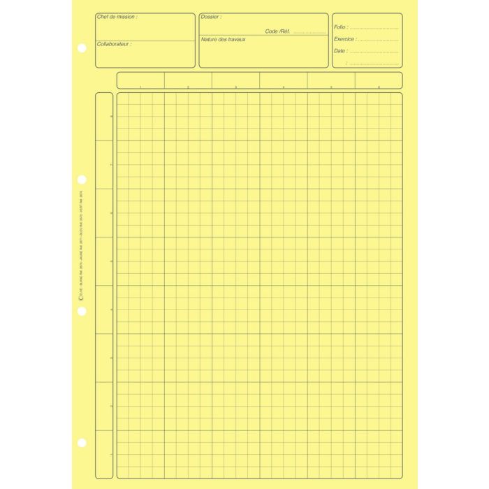 Bloc A4 de 80 Feuilles de travail Jaunes pour les Audits et Révisions comptables, matrice de contrôle. Produit 2671