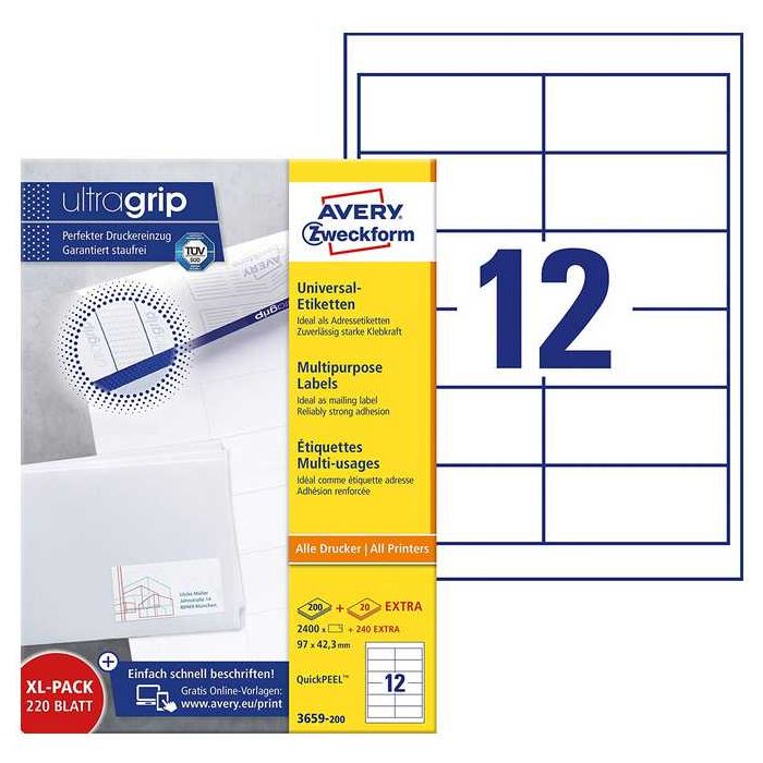 Étiquettes adhésives écologiques 97 x 42,3 mm pour Publipostage et un marquage de qualité AVERY. Produit 3659