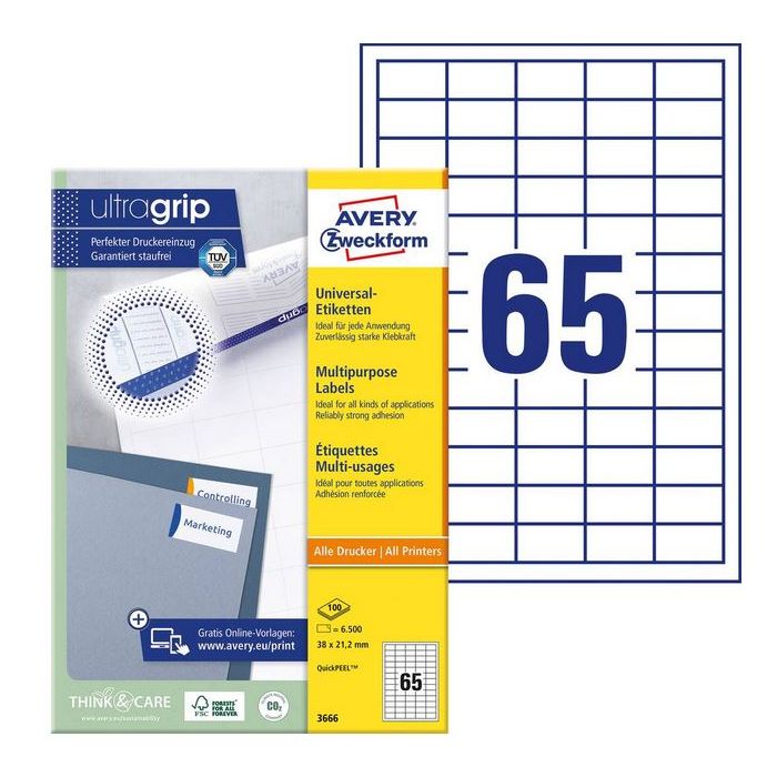 Étiquettes adhésives écologiques 38 x 21,2 mm pour un marquage de qualité AVERY. Produit 3666