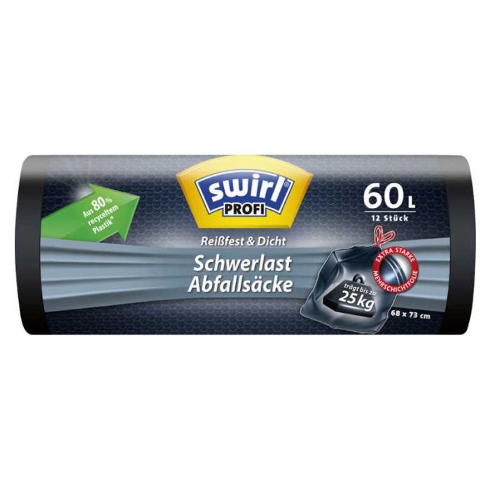 Sac poubelle opaque noir 60 litres pour les déchets de SWIRL. Produit 4008871215963