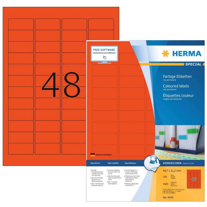 Étiquettes adhésives - 45,7 x 21,2 mm - Rouge HERMA Lot de 4800