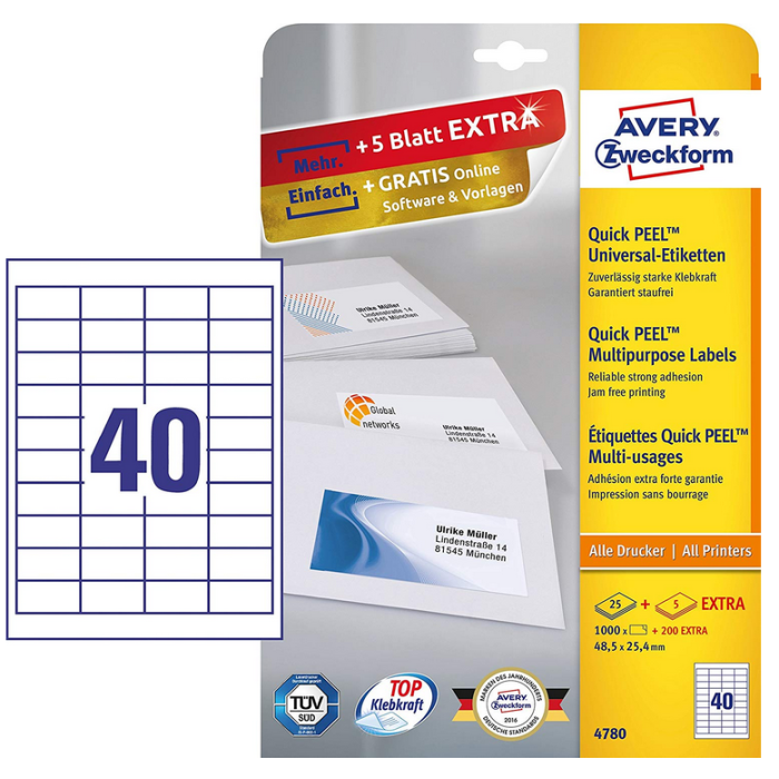 Étiquettes autocollantes pour Adresse et Marquage de produit. Adhésion permanente. Produit 4780