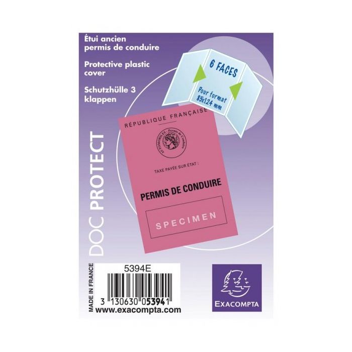 Pochette pour protéger le Permis de conduire (ancien modèle) 85 x 125 mm EXACOMPTA. Produit 5394UE