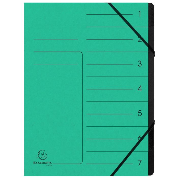 Trieur avec fermeture à élastiques et 7 compartiments Vert EXACOMPTA. Produit 540703E