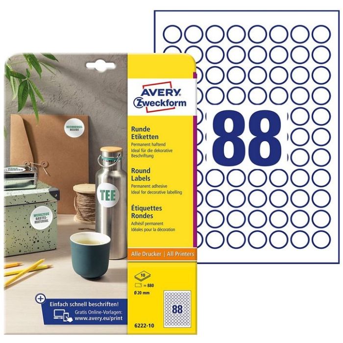 Étiquettes adhésives permanentes - Diamètre 20 mm - Blanc AVERY Lot de 880