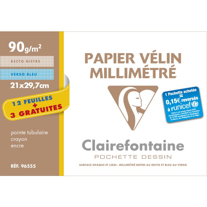 Pochette Papier Millimétré A4 CLAIREFONTAINE Lot de 15