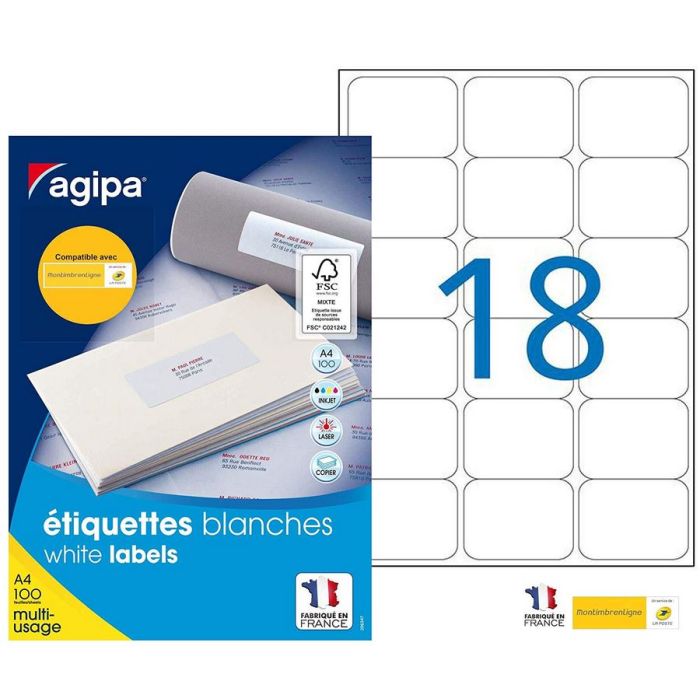 Étiquettes autocollantes permanentes d'AGIPA 100981 de format 63,5 x 46,6 mm à imprimer. Produit 100981