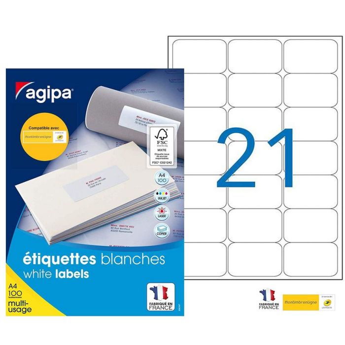 Étiquettes adhésives blanches - 63,5 x 46,6 mm AGIPA Lot de 1800Prix Spécial 14,39 € 11,99 € Prix normal 15,14 €