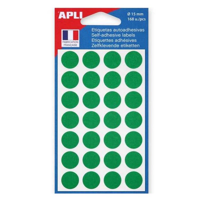 Paquet de gommettes APLI autocollantes Vertes de 15 mm : Praticité et visibilité garantie. Produit 111841