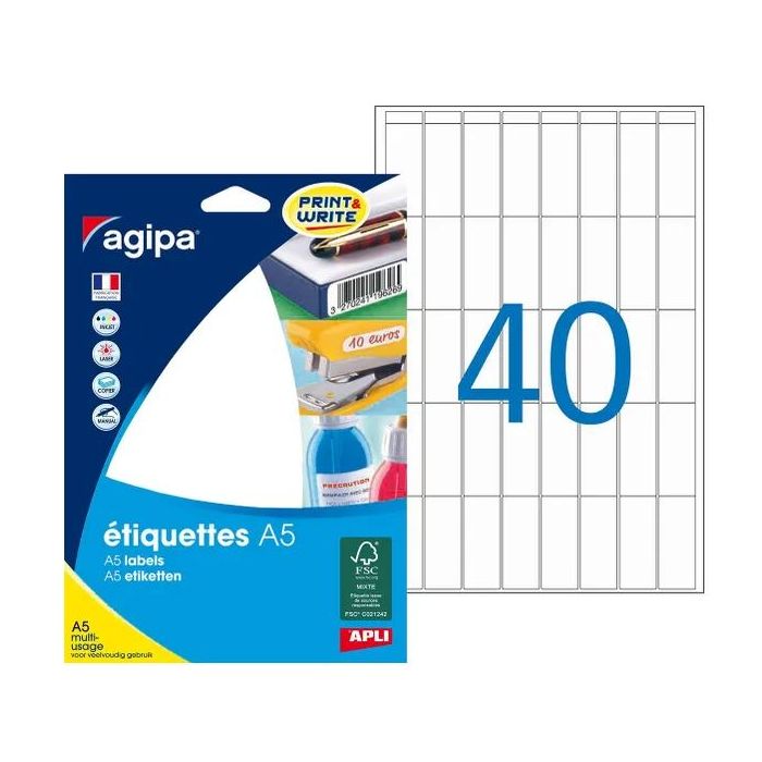 Étiquettes adhésives - 35 x 15 mm - Blanc AGIPA Lot de 640