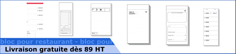 ASK-Distribution vous propose un large choix de Blocs à feuilles autocopiantes (duplicata ou triplicata) pour la Restauration rapide, Restaurant, Bar et Traiteur : Carnet de prise de Commandes, Carnets d'Additions, Blocs Maître d'hôtel, Fiches repas, etc. Commandez vos Carnets et Blocs autocopiants des Marques Exacompta, Elve et Cogir.