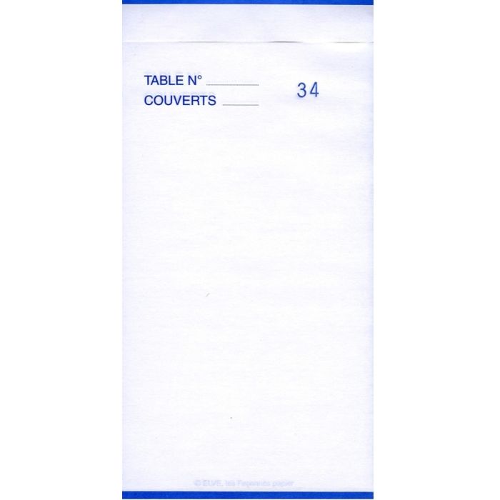 Carnet pour la prise de commandes dans un restaurant, bar, brasserie, etc. Feuillets autocopiants avec duplicata 165 x 85 mm. Produit 2202