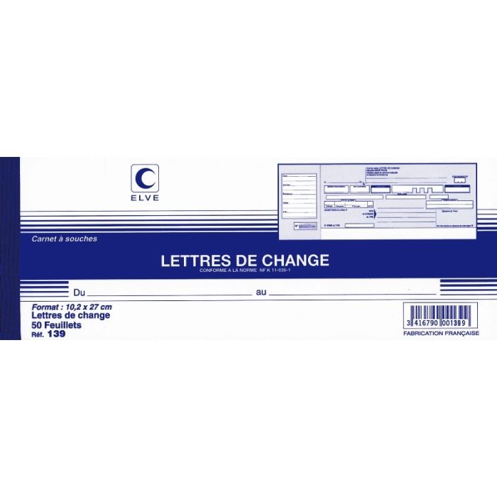 Lettre de change Carnet de Traites normalisées ELVE