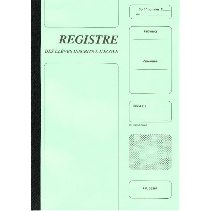 Registre d'enregistrement des élèves fréquentant l'école de marque ELVE. Produit 36287