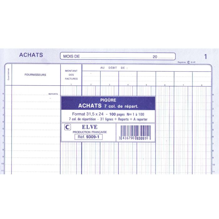 Registre - Journal des Achats - 11 colonnes - 320 x 250 mm ELVE37,38 € 31,15 €
