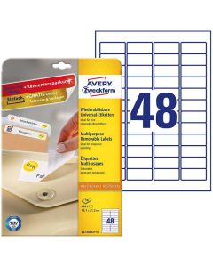Étiquettes amovibles - Blanc - 45,7 x 21,2 mm AVERY Lot de 480Référence : 72473610