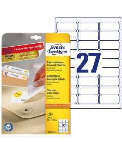 Étiquettes amovibles - Blanc - 63,5 x 29,6 mm AVERY Lot de 270Référence : 72473710
