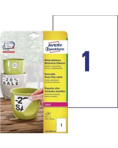 Étiquettes ultra résistantes amovibles - 210 x 297 mm AVERY Lot de 20Référence : 72047750