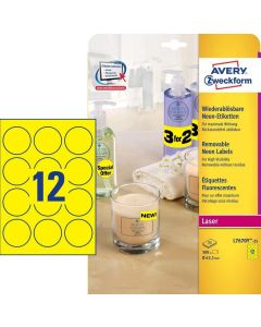 Étiquettes amovibles rondes - Jaune fluo - 63,5 mm AVERY Lot de300Référence : 72076702