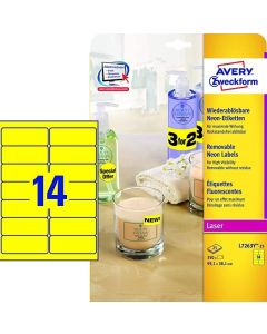Étiquettes amovibles - Jaune fluo - 38,1 x 21,2 mm AVERY Lot de 1625Référence : 72765125