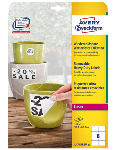 Étiquettes ultra résistantes amovibles - 99,1 x 139 mm AVERY Lot de 80Référence : 72047740