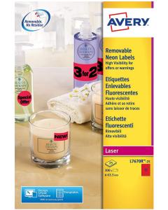 Étiquettes rondes amovibles - Rouge fluo - 63,5 mm AVERY Lot de 300Référence : 72076701