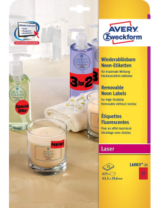 Étiquettes amovibles - Rouge fluo - 63,5 x 29,6 mm AVERY Lot de 675Référence : 72600325