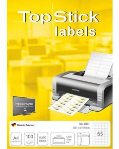 Étiquettes adhésives 38,1 x 21,2 mm - Blanc TOP STICK Lot de 6500Référence : 6510000