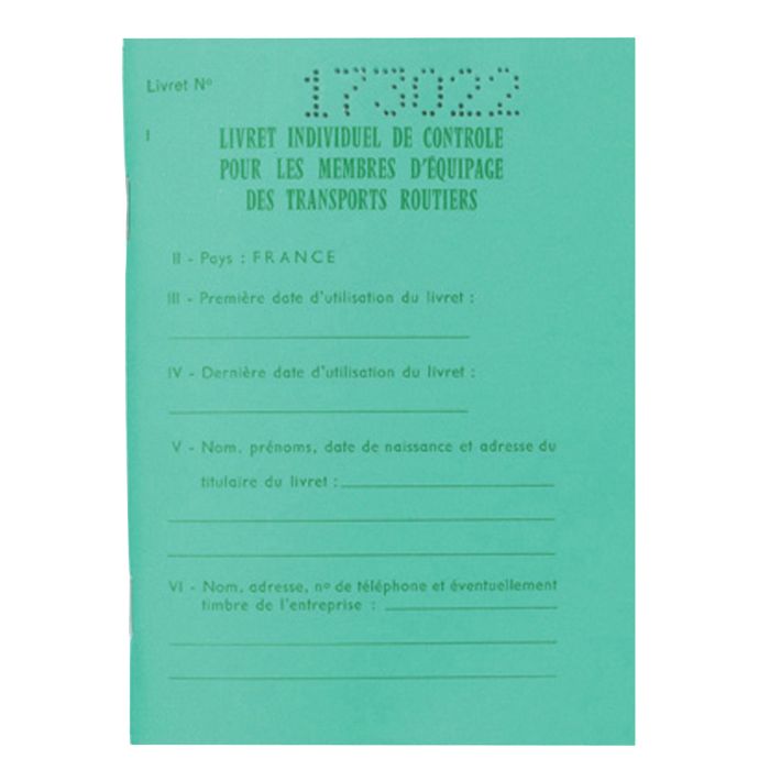 • Modèle officiel conforme à l’arrêté du 20 juillet 1998 qui définit le livret individuel de contrôle dans les transports routiers de marchandises de moins de 3,5 tonnes.