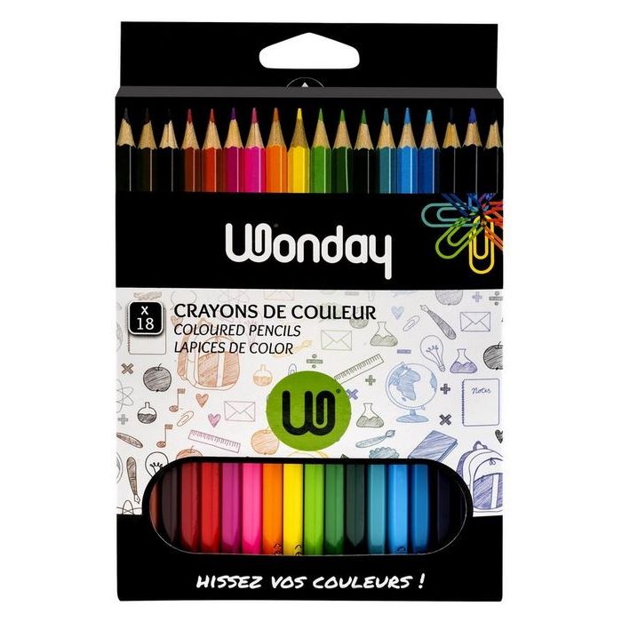 Etui de 18 crayons de couleurs pour le Dessin et le coloriage WONDAY. Produit FCG000192