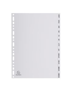 Jeu de 12 Intercalaires mensuels A4 PP gris - Janvier à décembre EXACOMPTARéférence : 8702361