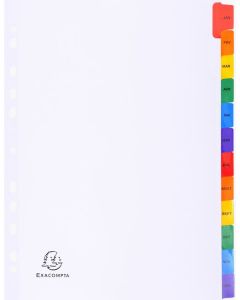 Jeu de 12 Intercalaires mensuels PP - Janvier à décembre - 225 x 297 mm EXACOMPTARéférence : AC03-95E
