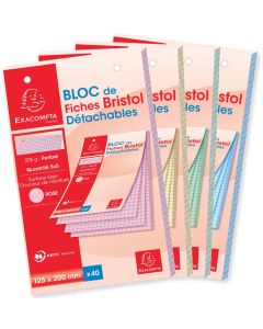 Fiches Bristol quadrillées et perforées - 105 x 148 mm - Assortiment EXACOMPTA Lot de 100Référence : 8700884