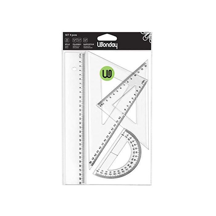 Set de géométrie - Règle, équerres et rapporteur WONDAY