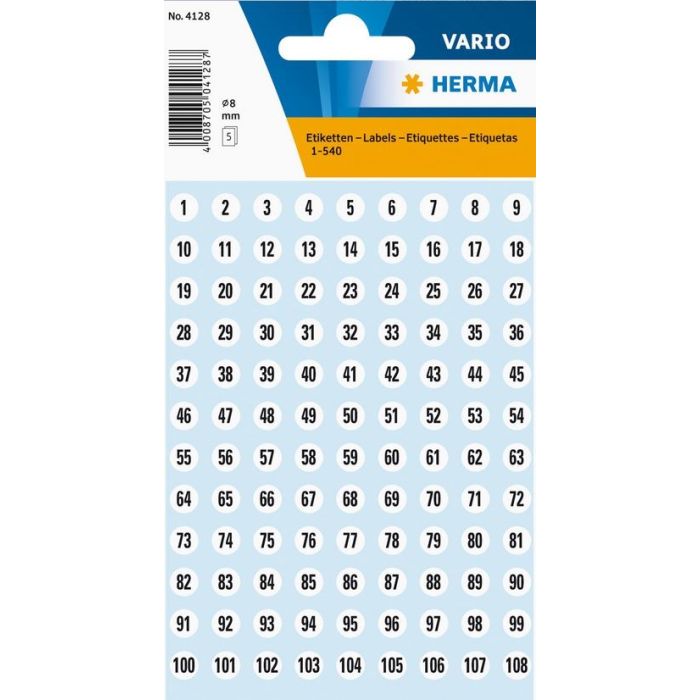 Etiquettes à chiffres autocollants noirs, hauteur de 8 mm HERMA. Produit 4128