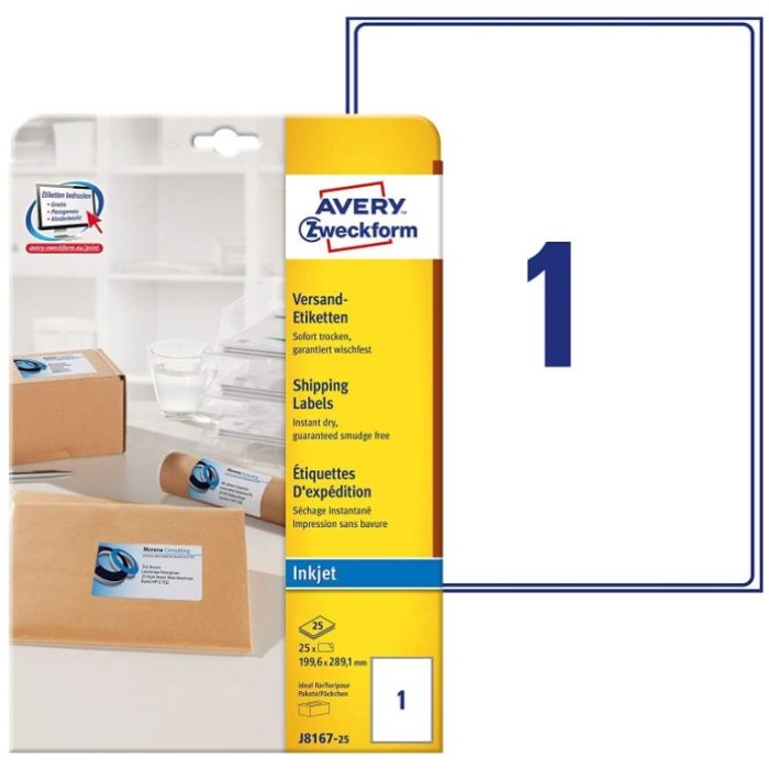 Étiquettes d'expédition - 199,6 x 289,1 mm - Jet d'encre - Blanc AVERY Lot de 25