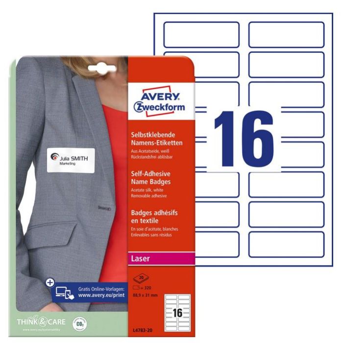 Etiquettes Badges pour Textile - Blanc - 88,9 x 31 mm AVERY Lot de 320
