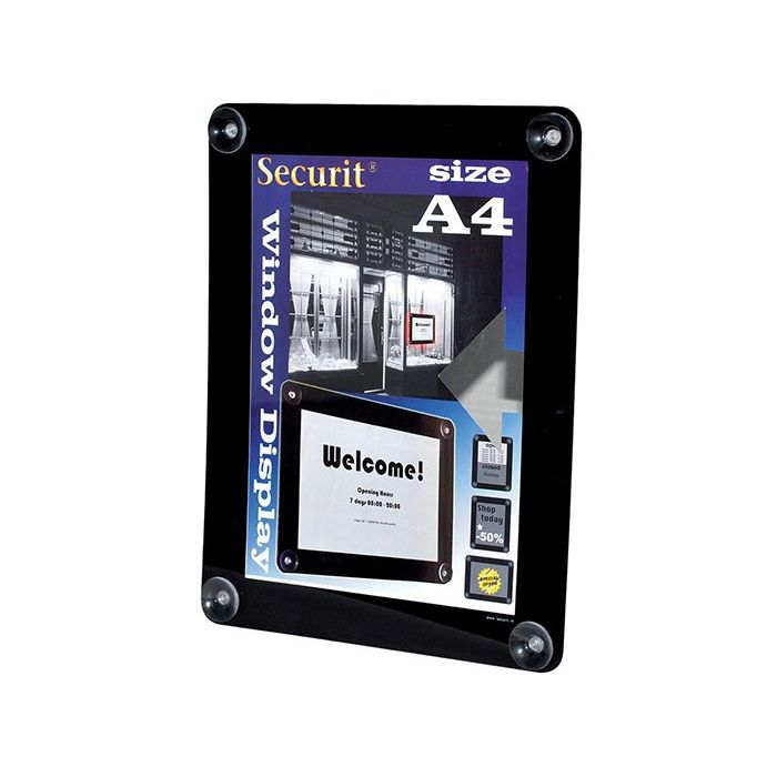 Porte-Affiches à contour noir avec ventouses pour documents A4 - 210 x 297 mm de SECURIT. Produit PFW-A4-BL