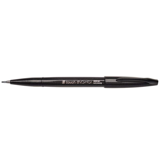 Stylo feutre Noir à pointe fine et flexible pour une écriture facile Sign Pen SES15 PENTEL ARTS. Produit SES15C-A